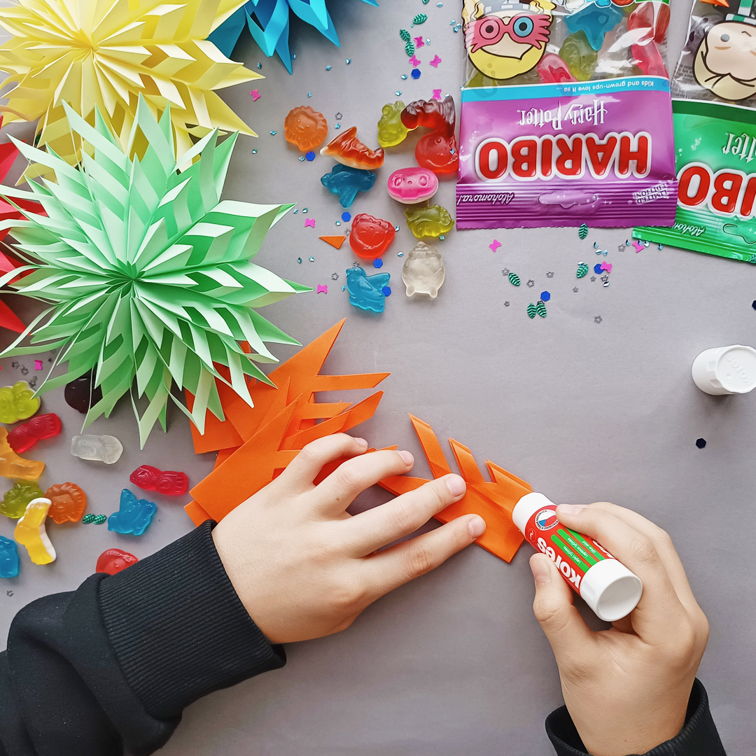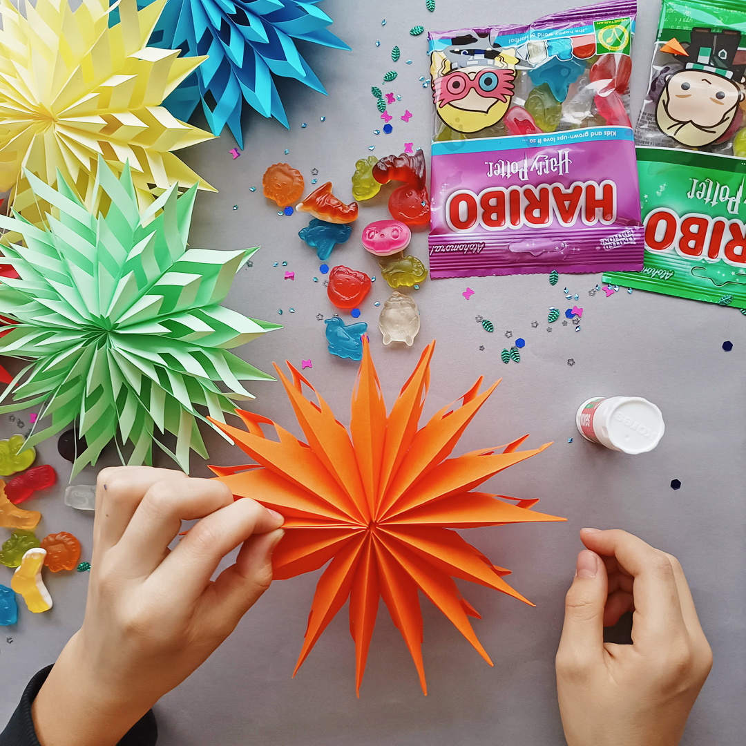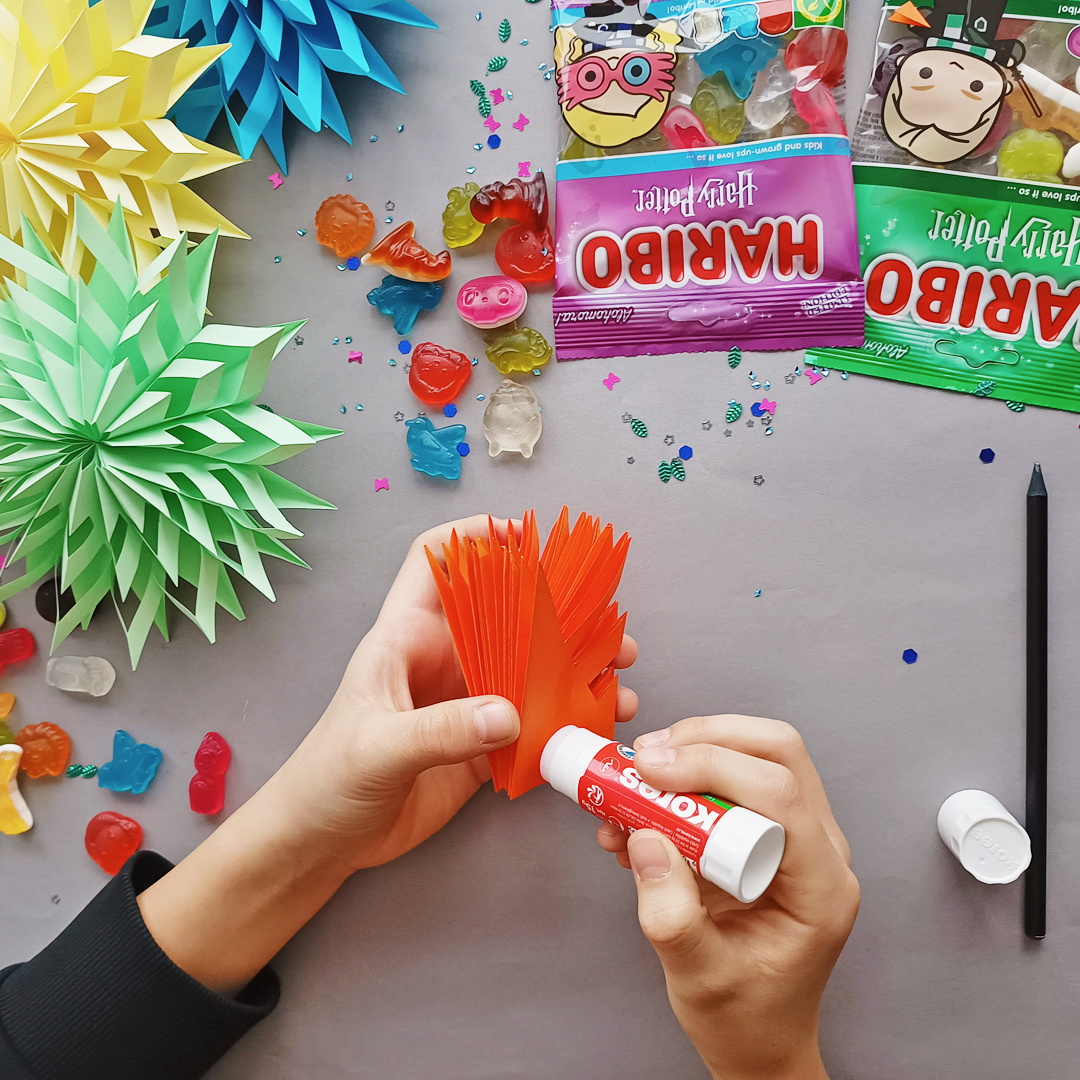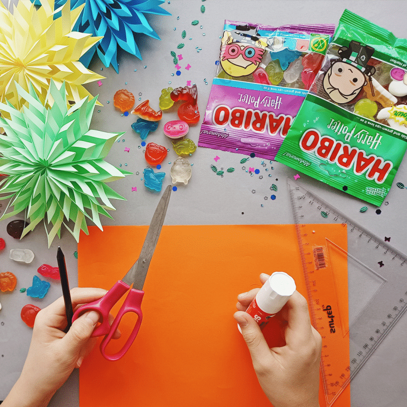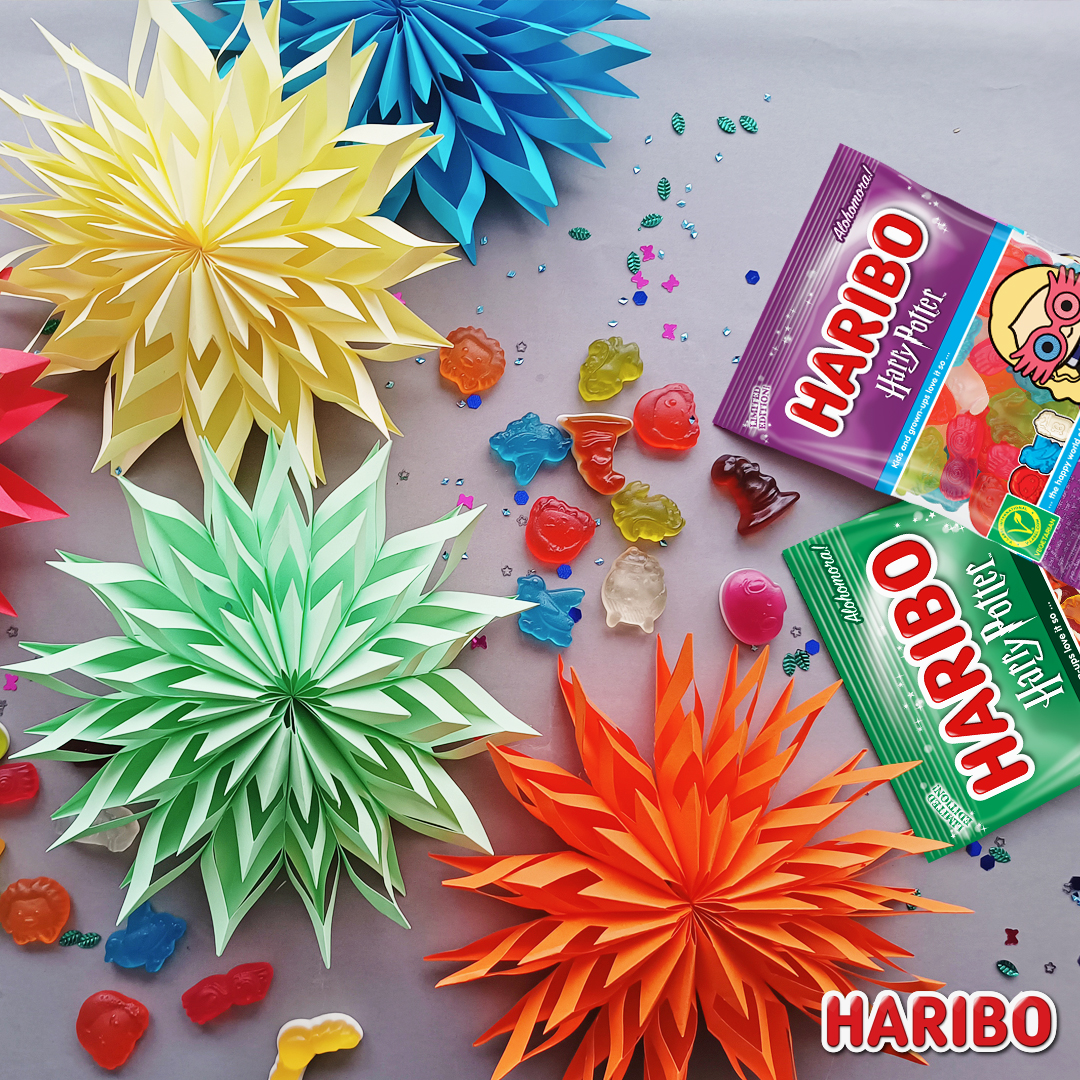 10. Vytvorili sme fantastickú karnevalovú dekoráciu. Ozdobte stôl cukrovinkami HARIBO z kolekcie Harry Potter a karneval môže začať.