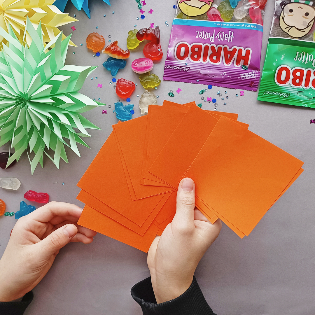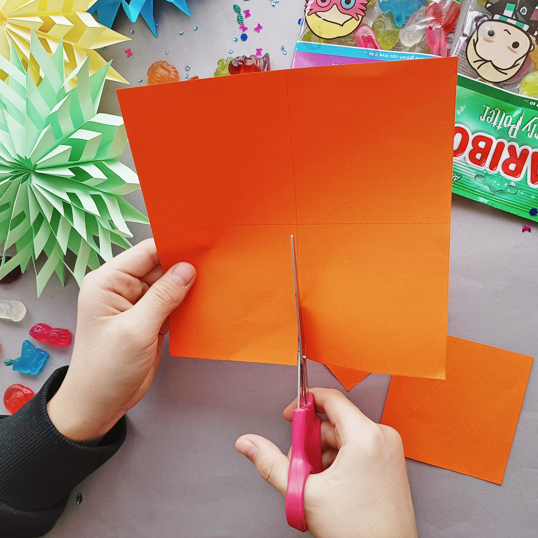 1. Vezmite farebný papier a nakreslite naň štvorce s rozmermi 9 x 9 cm.