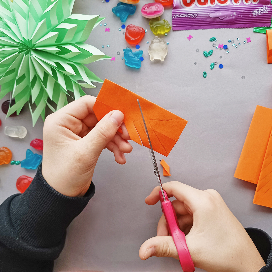 5. V strede tak vznikne prekrývanie, ktoré potrieme lepidlom a prilepíme. Dávajte pozor, aby ste nelepili vnútornú časť, pretože tá musí zostať voľná.