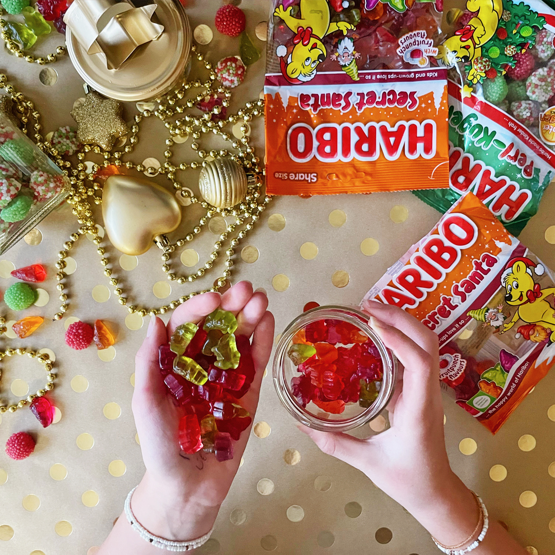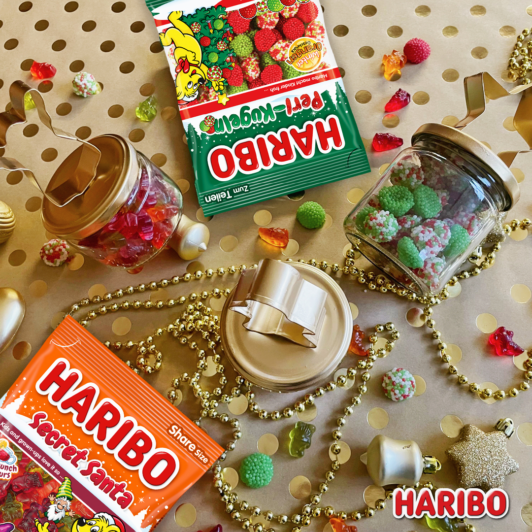 vianočné cukrovinky HARIBO (HARIBO Secret Santa, HARIBO Perl-Kugeln)